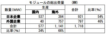 图表 3 2016年10-12月日本太阳能电池模块的总出货量