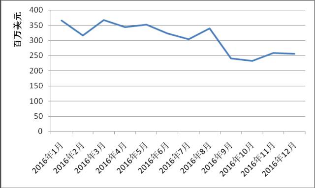 图表 4 中国光伏组件2016年对美出口下滑20.33%